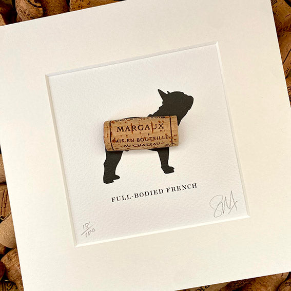Woofs and Wine, are a range of small handmade silhouette prints, that wittily combine my love of drinking and dogs! Each signed print is created in a limited edition run of either 50 or 100 prints. The design of the cork varies from print to print (mainly dependent on what's been chilling in the fridge over the weekend) and the prints are available both framed and unframed. The box frames have a depth of 35mm to allow for the 3-dimensional nature of the print. NB. The image of the framed print is merely illustrative and your chosen print will be the one supplied.
