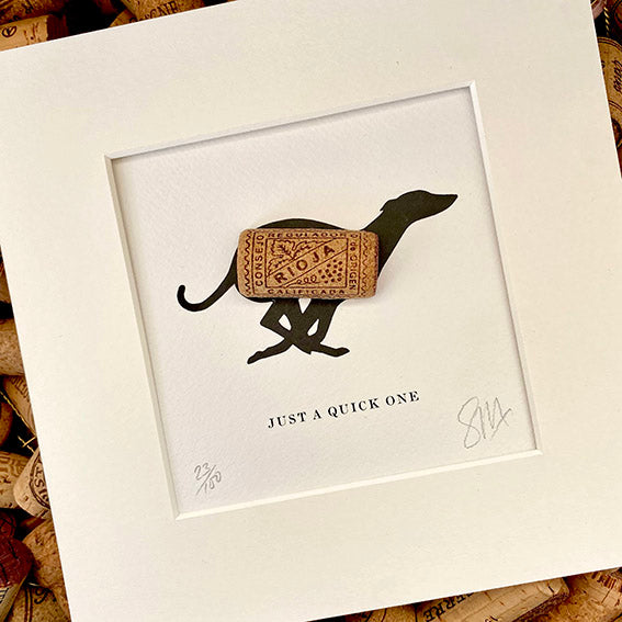 Woofs and Wine, are a range of small handmade silhouette prints, that wittily combine my love of drinking and dogs! Each signed print is created in a limited edition run of either 50 or 100 prints. The design of the cork varies from print to print (mainly dependent on what's been chilling in the fridge over the weekend) and the prints are available both framed and unframed. The box frames have a depth of 35mm to allow for the 3-dimensional nature of the print. NB. The image of the framed print is merely illustrative and your chosen print will be the one supplied.